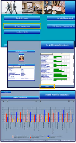 - L’HR Data Management ci consente di avere una sintesi dei dati personali di ciascuna risorsa, unita ad una valutazione (sia qualitativa che quantitativa) di specifiche capacità e qualità personali.