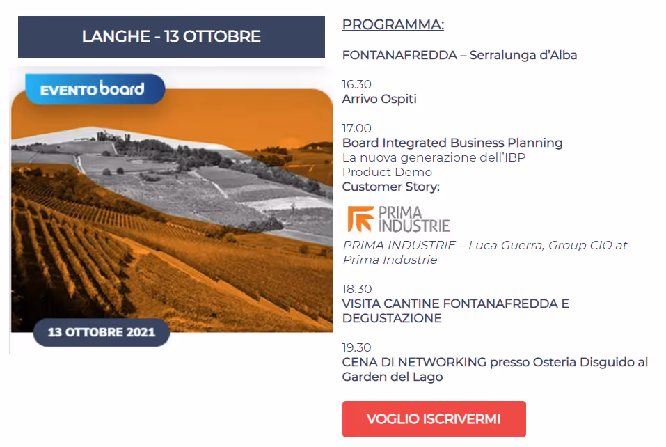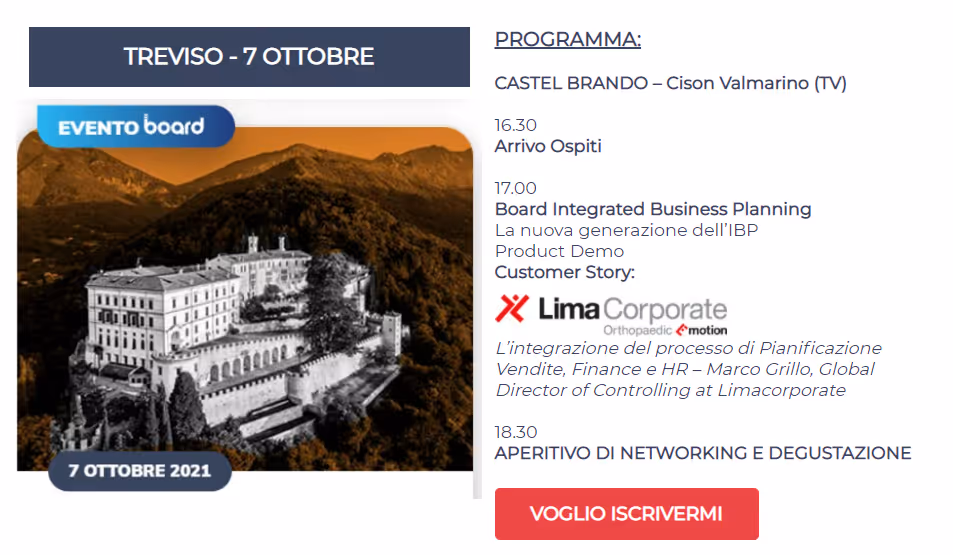 Roadmap di eventi in giro per l’Italia dove verrà mostrato tramite Customer Stories come è possibile unificare la pianificazione strategica e operativa in una piattaforma aziendale integrata per un processo più efficace ed efficiente e per un approccio collaborativo.