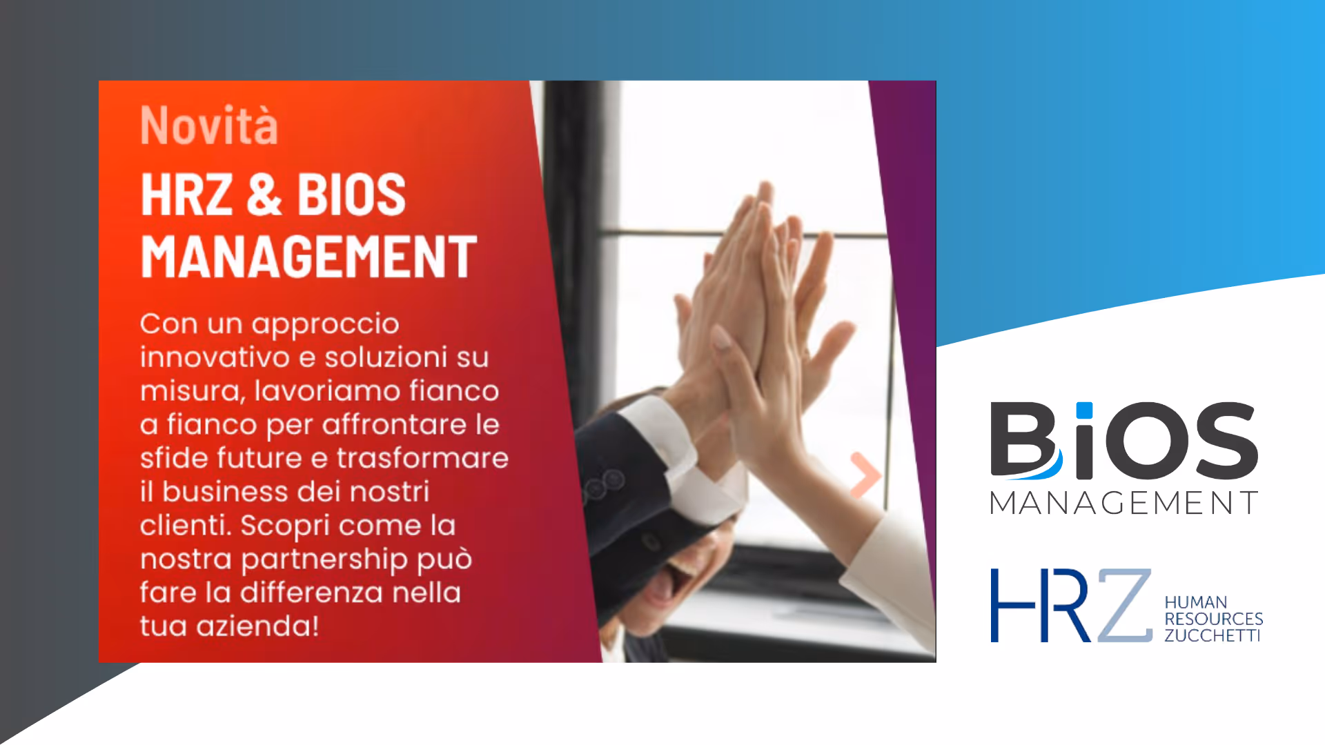 La partnership tra Bios Management e HRZ nasce da una visione condivisa: fornire alle aziende strumenti e competenze per gestire le Risorse Umane in modo strategico e orientato al futuro.