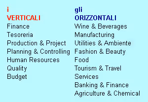 Per diminuire i tempi di implementazione, si ricorse all’utilizzo di moduli “preconfezionati” e altamente personalizzabili dedicati a specifiche aree aziendali. Questi moduli vennero battezzati col nome di “VERTICALI”.