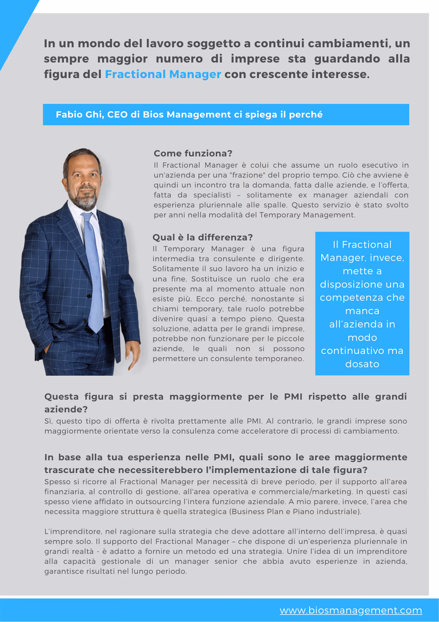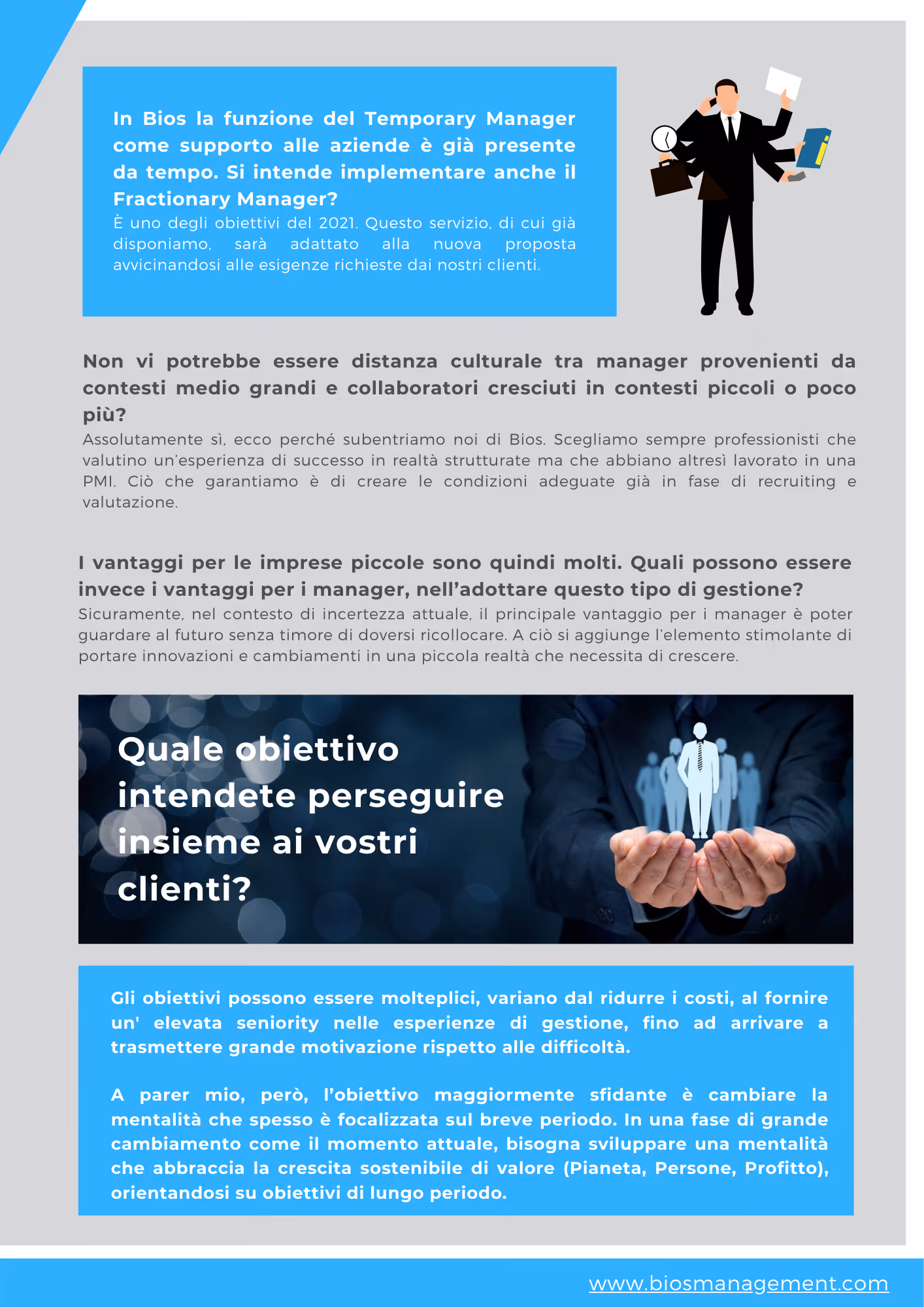 In Bios la funzione del temporary manager come supporto alle aziende è già presente da tempo. Si intende implementare anche il fractionary manager?